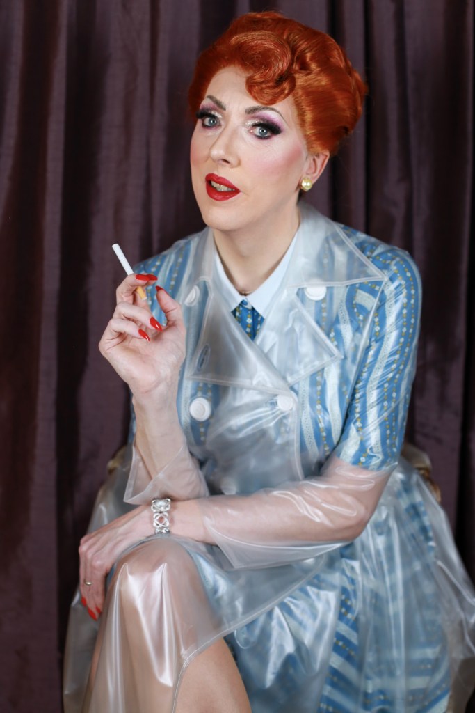 Pictured – plus, how many fetishes can I get in one picture? Smoking, PVC, 1950’s hairstyles, nails, lips, mumsy dresses, the list is endless…..