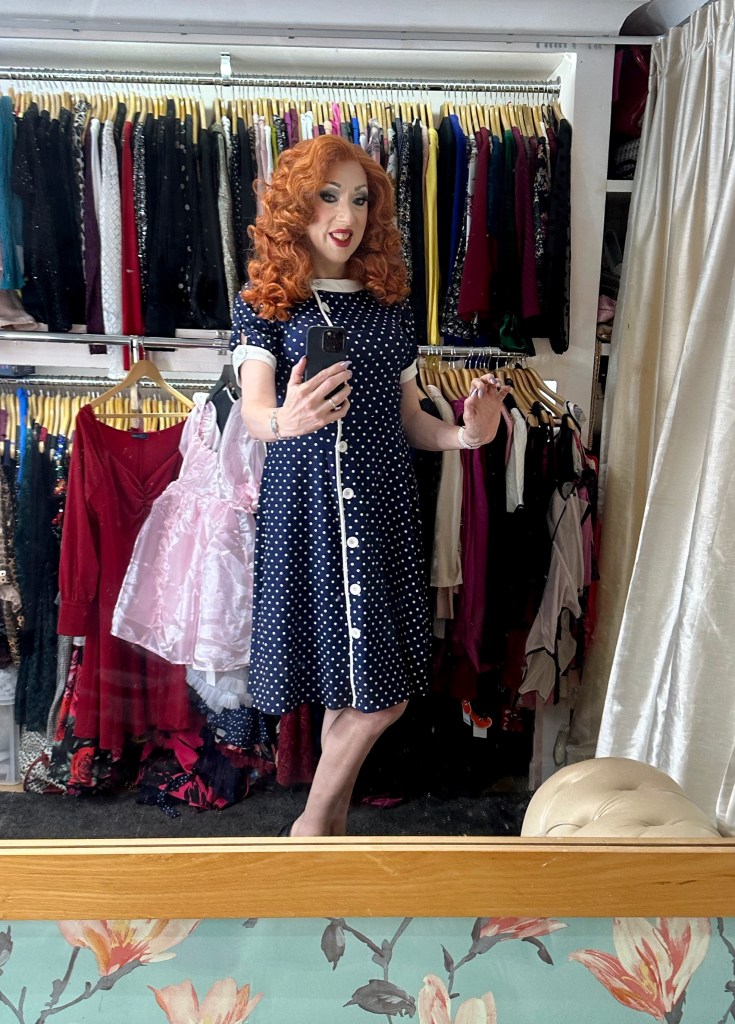 We didn’t go outside though. Turns out Cinders was having a bit of a nervous day; the tables had turned entirely, in the old days I was the one who was terrified of going outside. I kinda agree with her; a gushing 6ft 2in transvestite fully glammed-up in retro frocks and insanely happy is pretty much going to be seen.